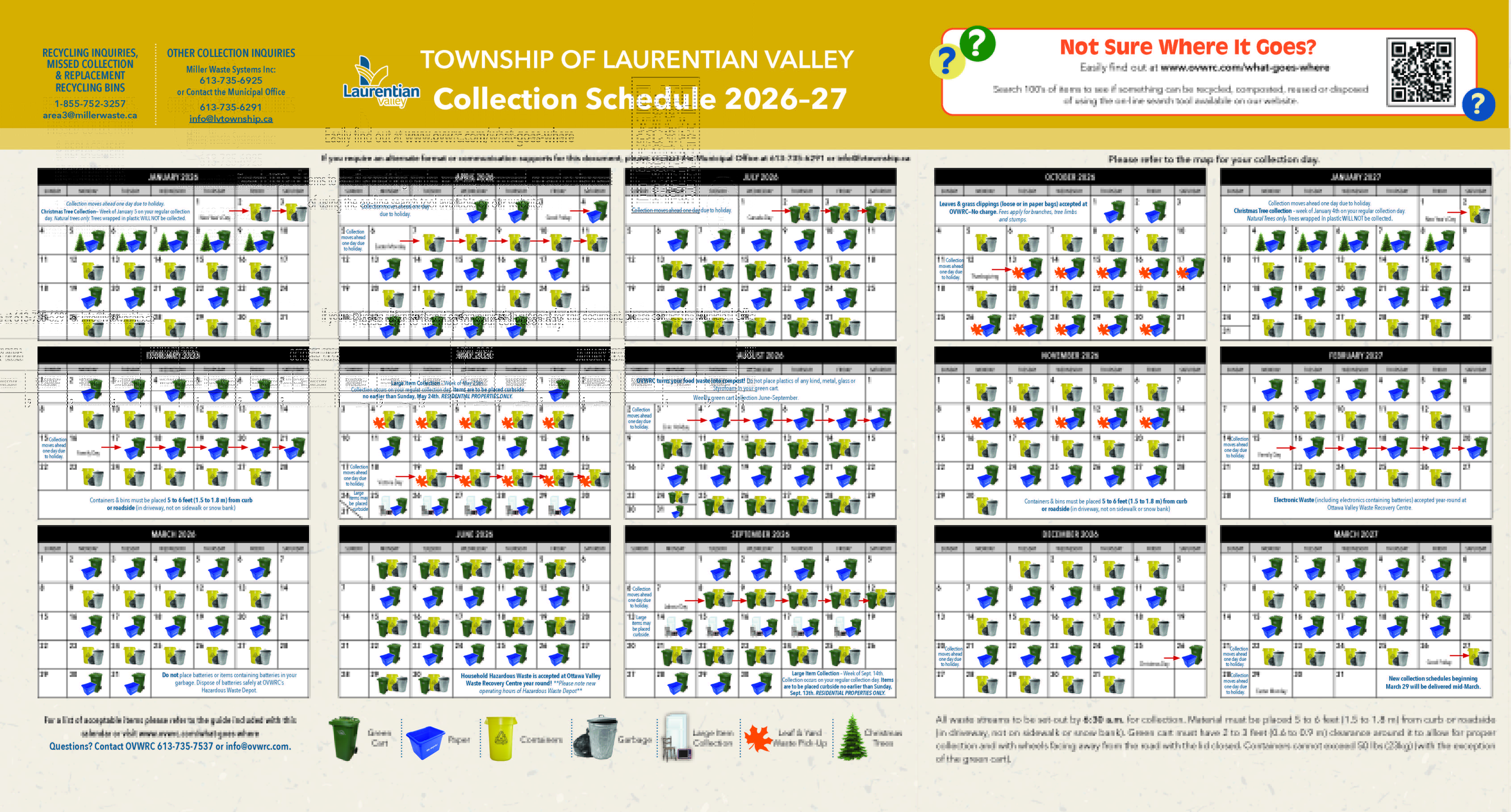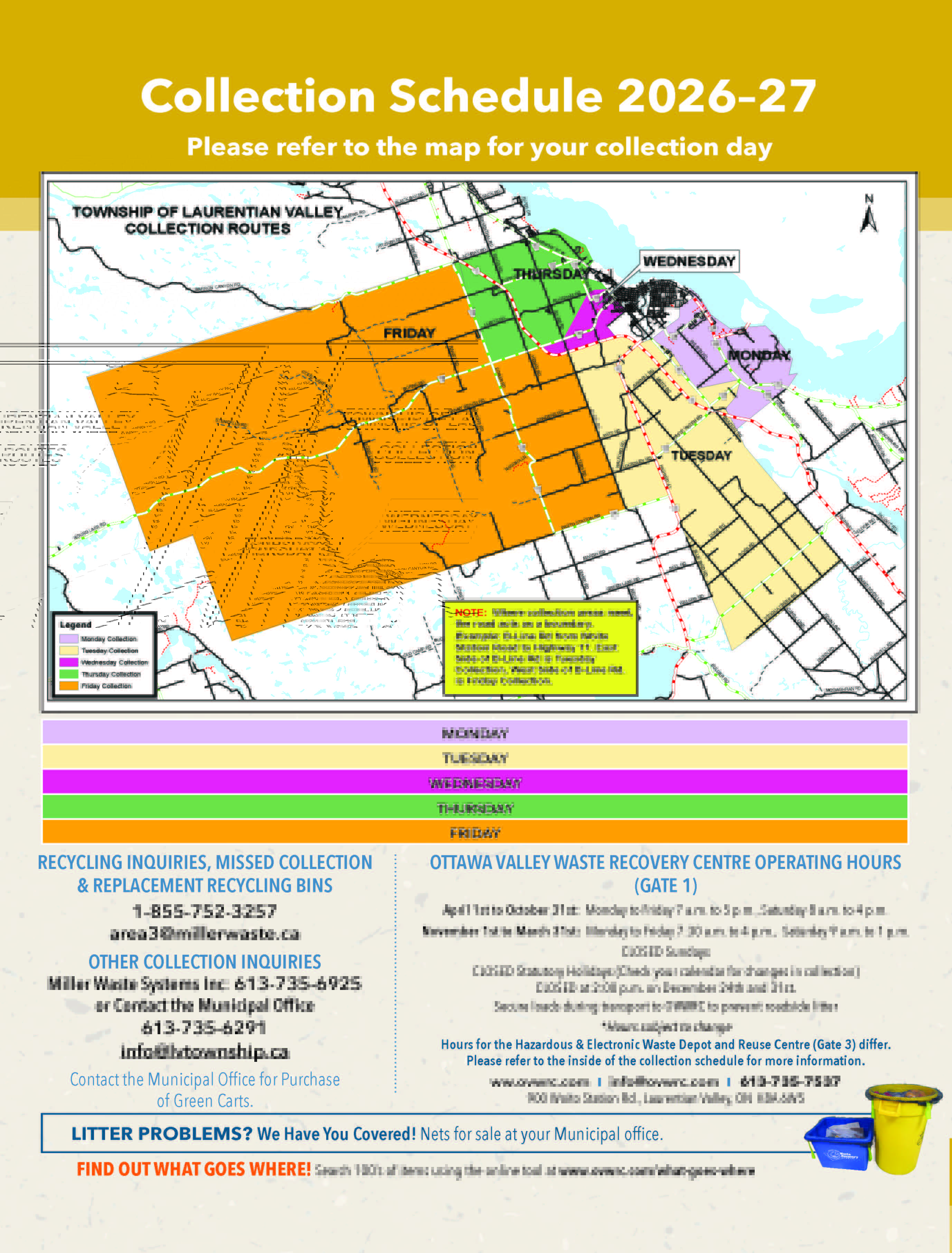 These items are accepted year round at the Ottawa Valley Waste Recover Centre during regular operating hours or at an Environmental Day (no charge).