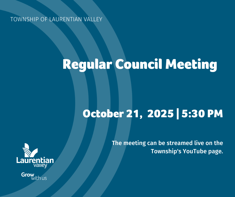 Where: Township of Laurentian Valley Council Chambers and livestreamed on the Township's YouTube Channel